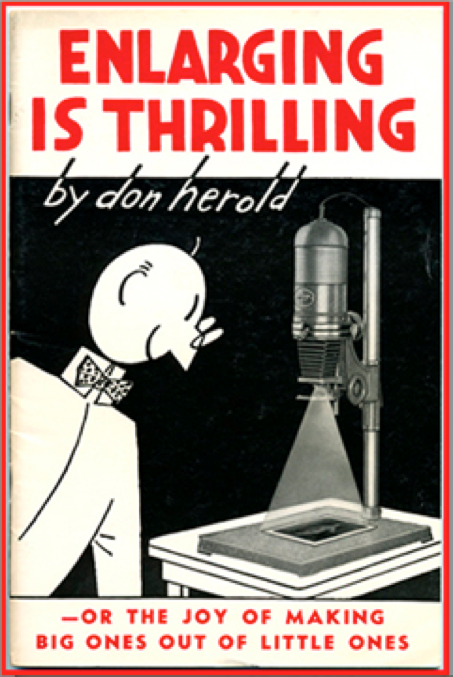 On a run-a-way to New York, with fellow barn-mates, Martha and Tony, I had made exposures with my very first used camera, the exact same model, both precious and cheap, that Hemmings had photographed Veruschka on purple seamless in Blow Up. I was eager to see if it worked. I also had a manual, Enlarging Is Thrilling – Or the Joy of Making Big Ones Out of Little Ones, by Don Herald; a book printed in 1945 to serve as a manual for the Federal Model #269 enlarger in a suitcase for $39.50.