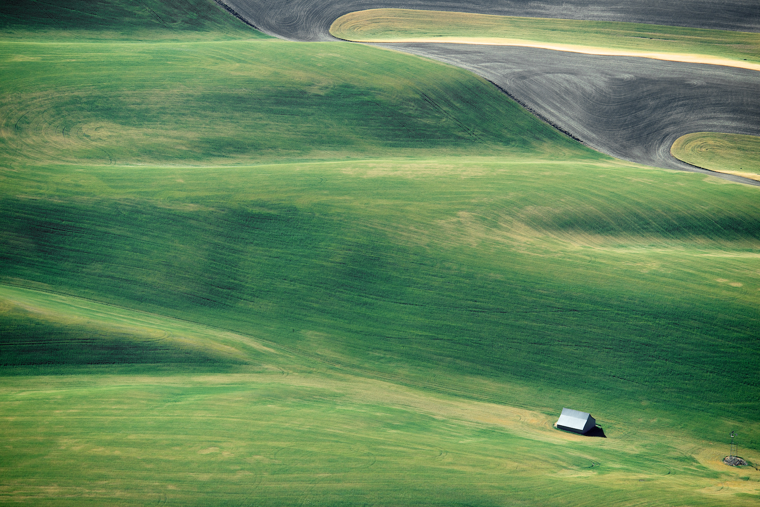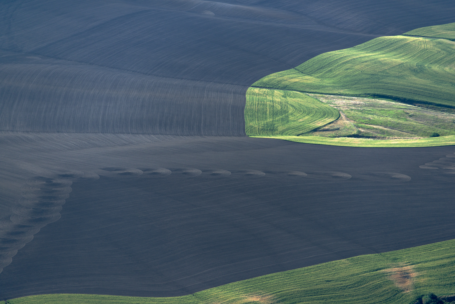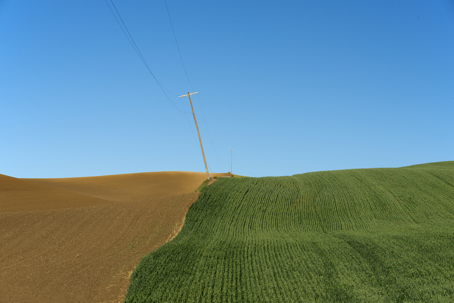I have been photographing the wheat fields in the southeastern corner of Washington for almost twenty years. It is my longest running project and forms a foundation for work made over my career. I was schooled in the discipline of photography initially formed in the Bauhaus in Germany before WW II. The wheat fields of the Palouse appeal to me because of the landscape’s minimal and reductive form while serving a clear function to use this land to make much of this nation’s wheat.